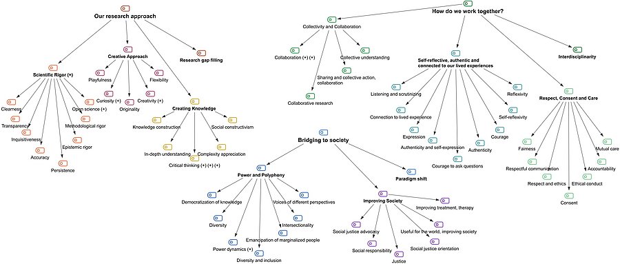 Wir stellen hierarchische Strukturen immer wieder in Frage und versuchen, den gleichberechtigten Zugang zu Wissen, unterschiedliche Sichtweisen und die Einbeziehung betroffener Personen in die Forschung zu fördern.